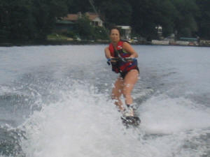 | Lauren Teton, editor SnowboardSecrets.com wakeboards first time, 2004 |