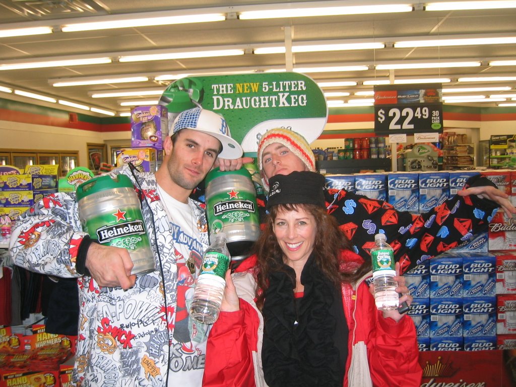 Cousino, filmmaker Tom Vayianos, and Lauren pick up necessities at the